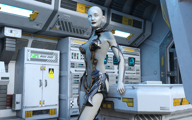 Loving the different variations of the same scene at least but also the gynoid's exterior.