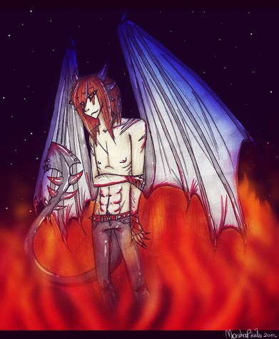 You actually did the lineart using touchpad!?! It must have taken like forever to do it! I cannot use touchpad, its just plain impossble for me TT_TT Then again i dont do digital art caus i fail at it..... You also did an amazing job with the highlights and shading! The markings on his wings also look really cool and his clothes looks perfect on him! >w<