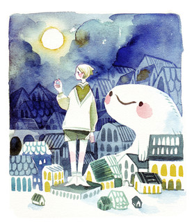 Although the monkeys themselves are looking kind of worried - perhaps they know about something even more terrible yet to come, and they want to warn the townspeople... unfortunatley they are trying to warn a scarecrow who can't help them! I truly love this painting