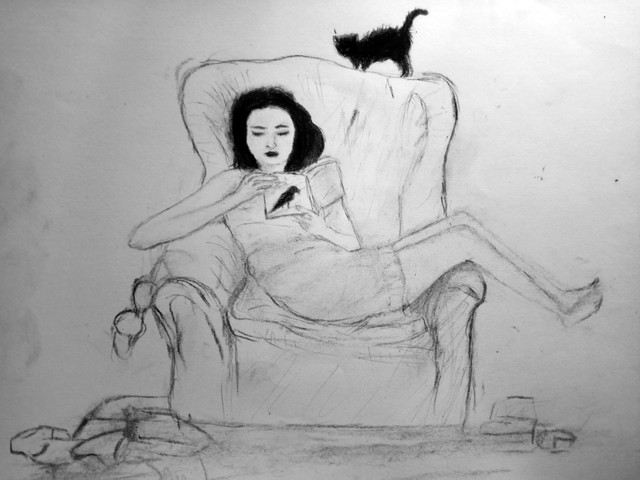 This is a really wonderful piece. I love the cat's facial expression and body positioning.