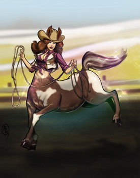 #carnival #centaur #characterart #commission #cowgirl #dnd #greenroom #sorcerer #playercharacter