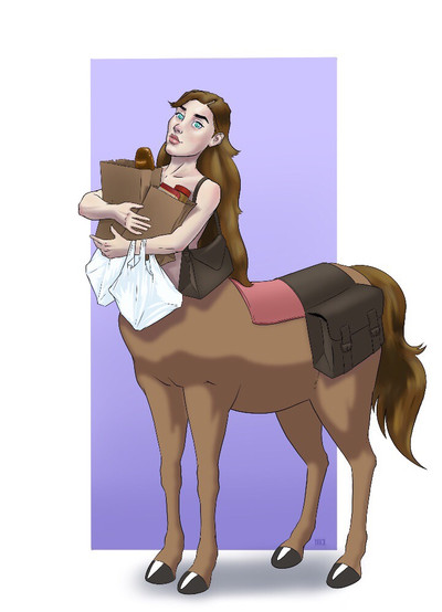 In today's economy, even D&D characters need a side hustle. (Melippe, my centaur sorceress; art by Mamabat2000)