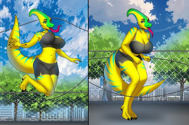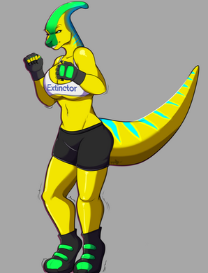 #scalie #dinosaur #cammy #commission #female #oc #oldart #parasaurolophus #pinup #sexy #streetfighter #commissionart #streetfighter6 #petulca #stephydrawsart_