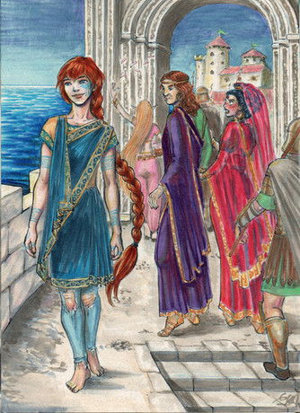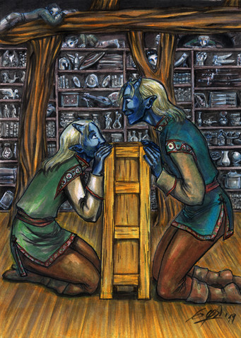 Another one for Ferret and Shin's family: one of the twins piggy riding their youngest sister (the family still grows... Ferret and Shin seem unable to stop adopting xD). Seems she had some trouble with her protesis (she had her foot amputated due to gangrene), so he transported her to the studio of the lady dwarf that does them! Good brotherJust for fun. Loosely based on this one of senshistock: