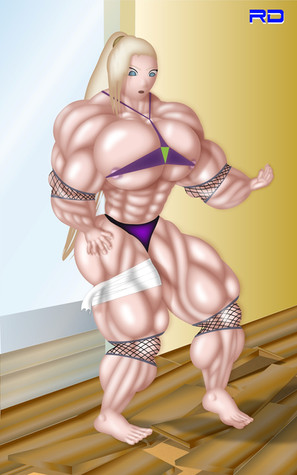 Could you do a picture of Nagi from Tenchi Muyo and Leona Heidern from King of Fighters, both EXTREMELY massive and more musclebound than ANYTHING you've done before? Both wearing black bikinis, both INSANELY huge. Leona doing a side chest flex, Nagi doing a double biceps flex, both trying to outflex each other. Is that doable?