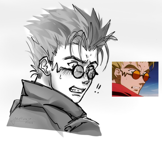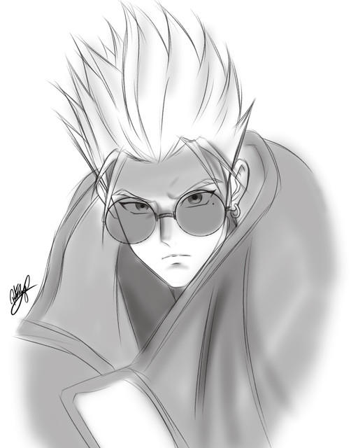 #anime #fanart #animefanart #digitalart #blackandwhite #grayscale #greyscale #sad #trigun #vash #vashthestampede #vash_the_stampede #colorless_expression