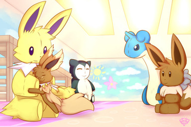Here's Gracie the Eevee enjoying the company of one of her plushies! :3 I want a plush as big as my body. TwT Commissioned by sweetcupcake / ! Thank you again!Related content