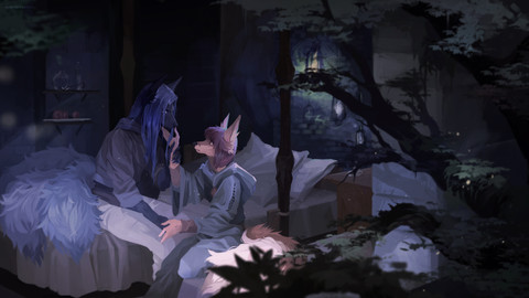 #astarion #bite #blood #canine #colored #commission #forest #furry #lantern #night #red #vampire #white #wolf #baldursgate3