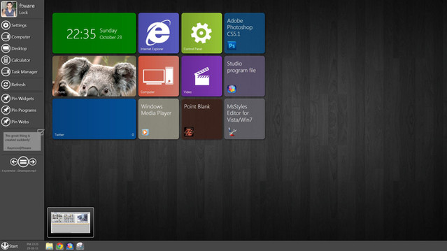 Newgen [link] is an application that brings the new Metro UI to your desktop.It is a set of live widgets/tiles that shows some content from the web and some from your PC.