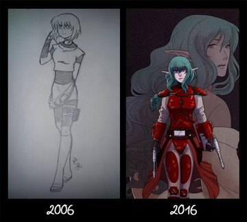 I always wanted to draw her armor like this and time to time I remember that 'ah yeah I should do the damages on her armor' but most of the time I simply forget it or am too lazy to make them look good, so yeah..... But I'll try to add them in the future because they give a lot to the design.