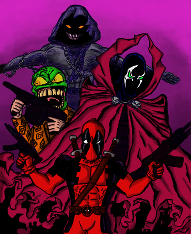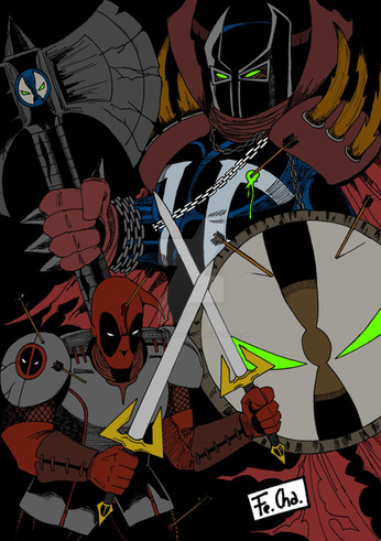 #fanart #warrior #monster #magic #armor #badass #comics #dccomics #deadpool #drawing #fanartdrawing #gothic #green #marveluniverse #purple #raven #red #robliefeld #sketch #spawn #superhero #teamup #toddmcfarlane #semiccomics