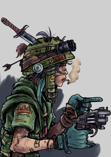 #badass #bikini #cigarette #dessin #drawing #girl #greenhair #heroine #japan #operator #punk #rifle #riotgear #sketch #smoking #suppressed #suppressor #tactical #bodypositive #g533scout #smokinggirl