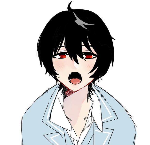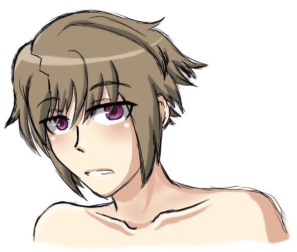 Tsuyoi can't keep his shirt on.Btw, I change his personality from hyperactive stupid guy to moody rude son of a tsundere. I watched too much Free! for Haruka bby
