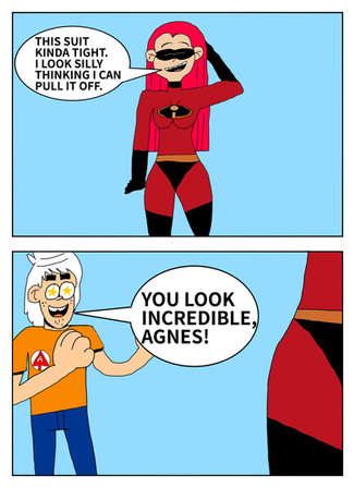 lol. This is funny. And Raven's outfit looks quite nice on her actually. She is probably used to tight outfits like this from dressing in her lucky girl costume. lol