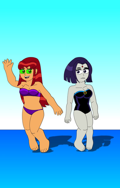 Whoa! Starfire and Raven look very sexy in bikini's. You did a good job