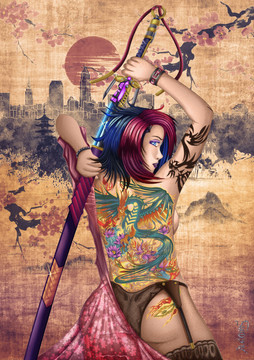 #blackgirl #dragon #katana #tatoo