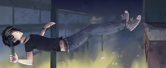 This is a scene where Mice is playing guitar alone on his school roof...