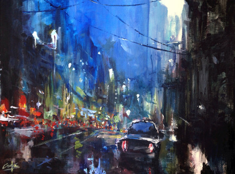 lovely painting! really like the distorted reflections in the puddles <3