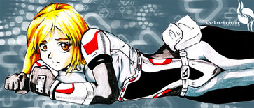 he aqui un dibujo de unos de los personajes de Street Fighter con el traje del Zero.Dibujado por mi y coloreado por