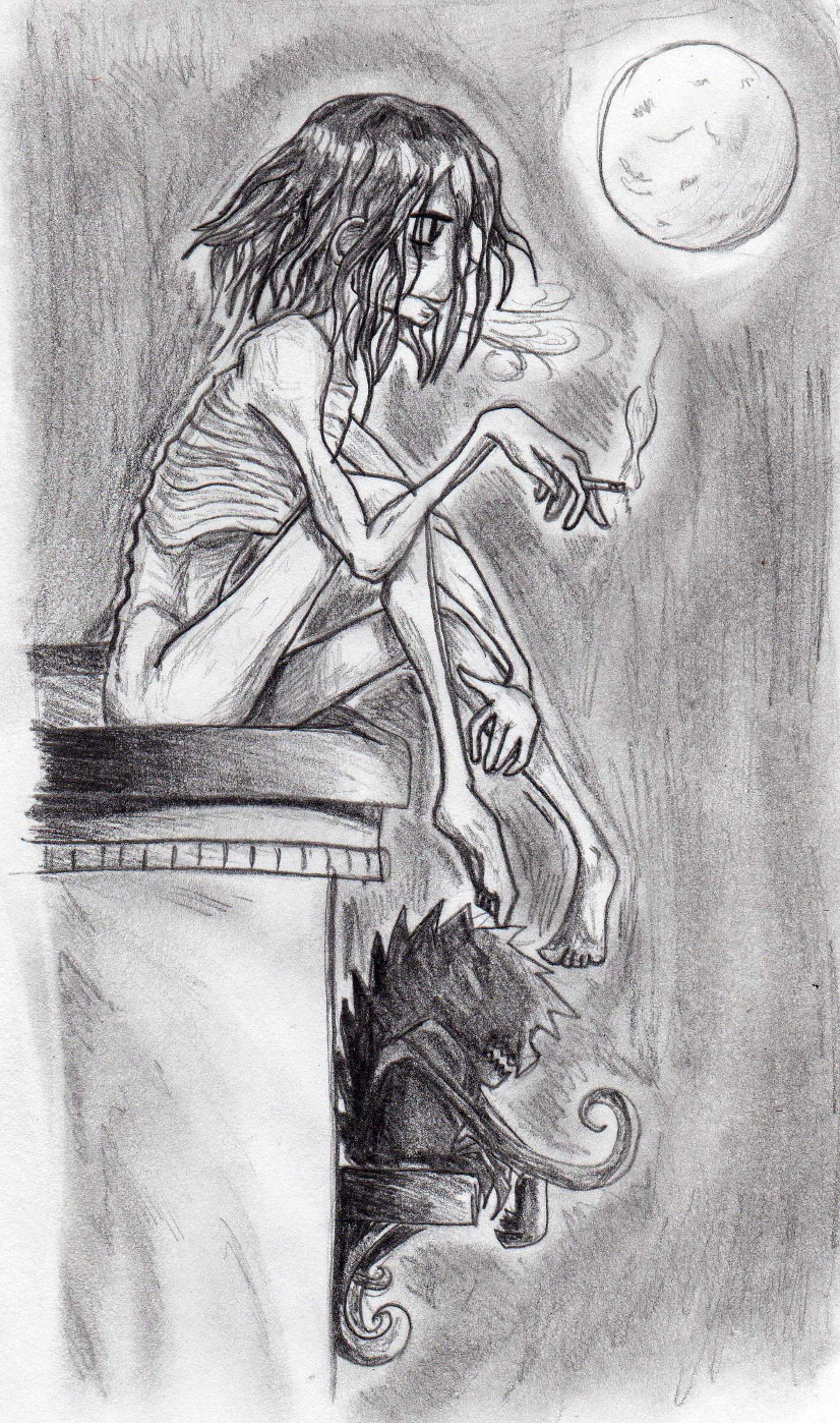 ummm ..i don't know why i drew this or even how i started to draw this but i used my good old 25 cent mechanical pencil on this an yeah it took like 45 min while watching tv(yay for multy tasking).Sigh i wish i was a better artist butsadly this is my best yet(and boy is it bad )i think i did the body correctly i still can figure out how to make the feet better..oh sigh -_-well enjoy ^.^