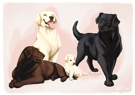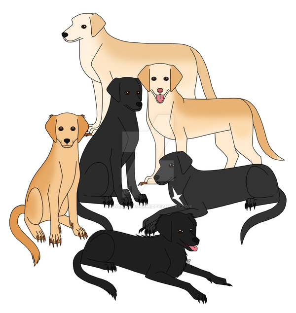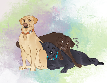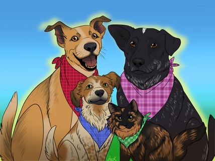 HOO BOY, this was quite the challenge for me x'D The super sweet AlexisDarkFire on Twitter came to me and wanted a commission of her family's dogs!! Meet (in order left to right) Raven, Rayne, Reegan, River and Ruger!!It was interesting trying to find a happy balance between making the doggos realistic and more cartoony and expressive, I really wanted to bring their personalities out!!Β