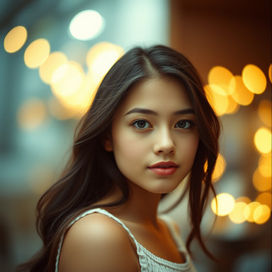 AI generated from:But added a few tweaks and learned about the seed system to better refine the image and consistently have the character I want: Added prompts: Liza Soberano (40%), DOF Angle Setup ON, soft shadows and highlights, Japanese woman facial structure (10%), seed number(______)