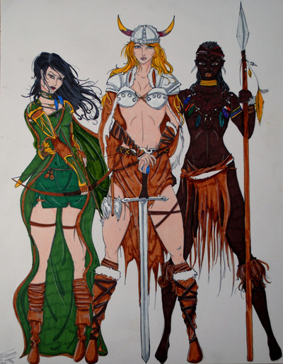 The Norns: Urd, Verdandi and Skuld from left to right. They are the Norse goddesses of fate. Urd is the goddess of the past, Verdandi is the goddess of the present, and Skuld is the goddess of the future. Urd is very wise, Verdandi is bright and hopeful, and Skuld is sort of evil. Skuld also works for Freya as a valkyrie and has caused lots of trouble for Loki and his family.Related content