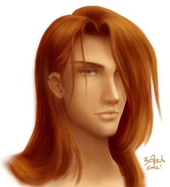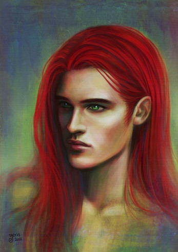 There is, IMO, just something universally splendid about ruby-red hair and peridot-green eyes. Mmmmmm. The odd thing is that this fellow was supposed to have black hair and silver eyes. He walked into my brain, immediately corrected my mental image, decided he would keep the 'just a joke' name I gave him to start out with, and that was 10 years ago. I'm glad he reminded you of a character that you love.