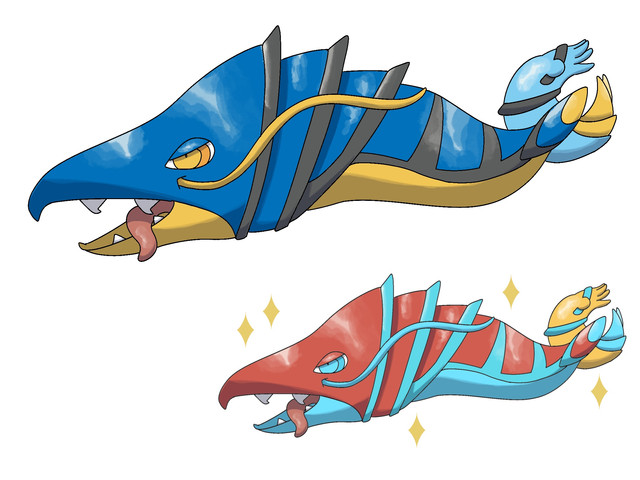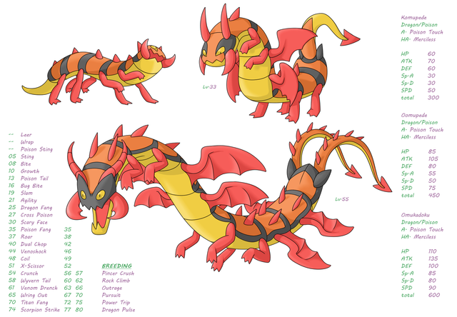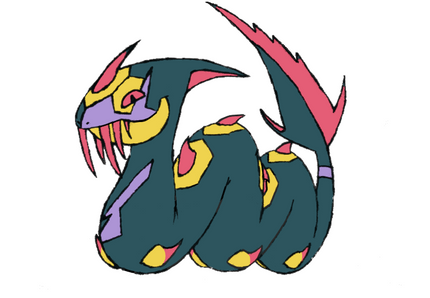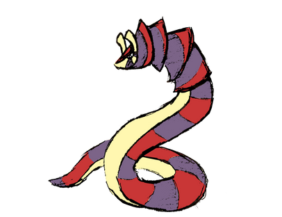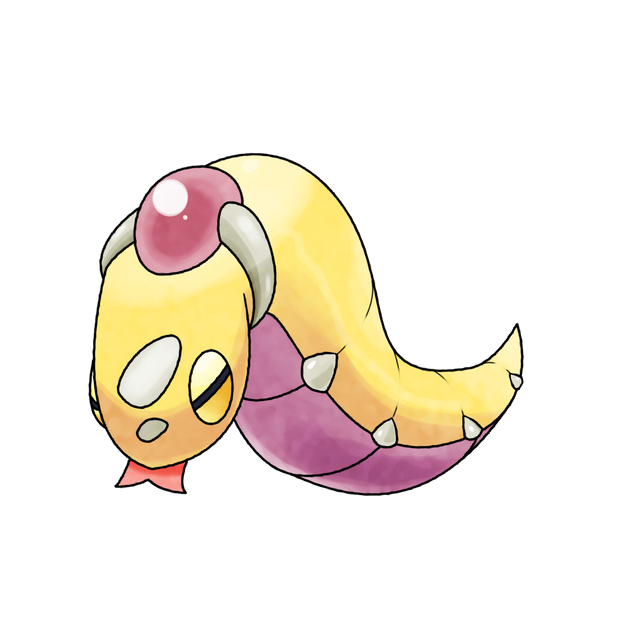 Design/concept: Terravoid is based pretty much on sandworms, quicksand, and probably a death worm. It draws inspiration from "Graboids" in Tremor, the Mongolian Death Worm, and mongolian armor. They can also use the move "drill run" by spinning their bodies like a drill to create massive holes on the ground that locals call "voids" (really fits the name ). Travelers try to "avoid' (fits the name again XD) messing with these guys in Desert Dunes because they are known to be really strong!