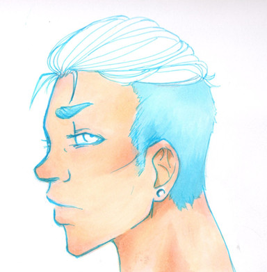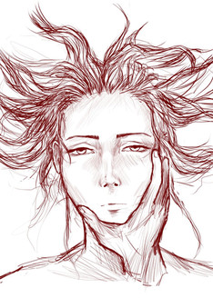 uhhhhhhhhhhh kształ jego twarzy jest świetny ;///w///; no i ten wzrok. Tak wogóle świetnie Ci wyszedł ten szkic z tą mieszaną techniką, te ołówkowe brushe wyglądają rewelacyjnie *w*