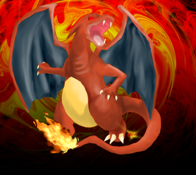 You also did a very nice job on the arms, legs, and tail color wise. The reflection of the flames on Charizard's limbs really add a nice tone to the picture itself. (I really like the flames on its tail. XD)