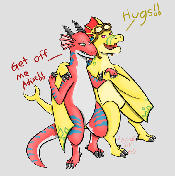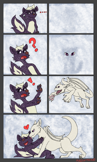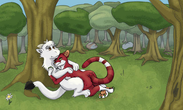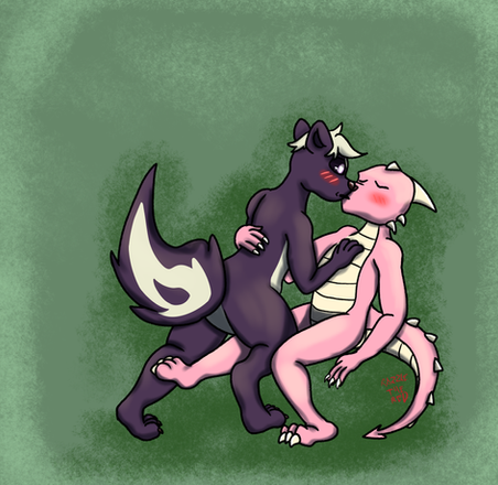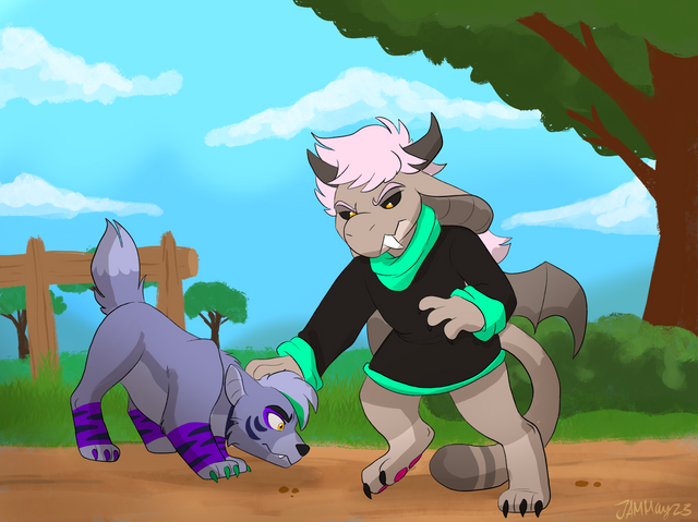 #digitalart #originalcharacter #anthro #anthropomorphic #bite #biting #duo #female #feral #funny #hug #kobold #male #scar #scars #skunk #tears #cry
