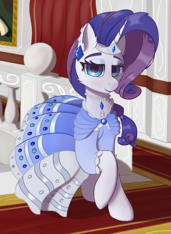 I don't just like, I love. The gentle curves help it look so soft. And that smile, and that expression, and that gorgeous manestyle and the dress... Love you, Rarity.