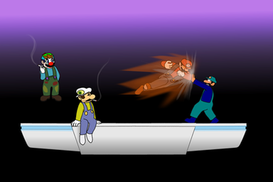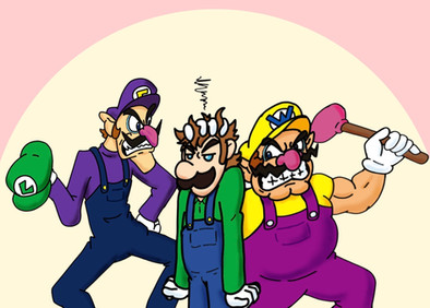 Waluigi and Wario from Super Mario Brothers..