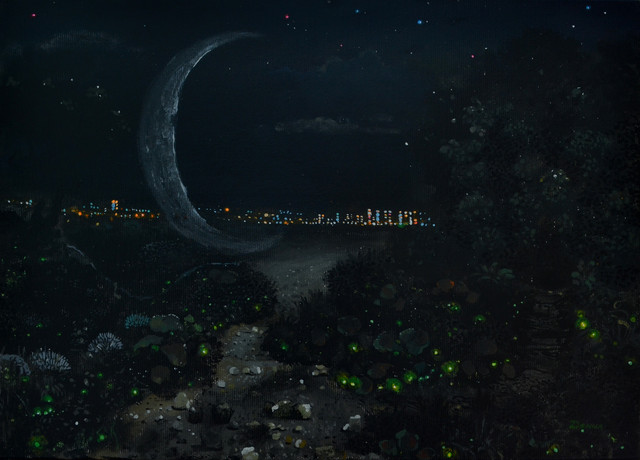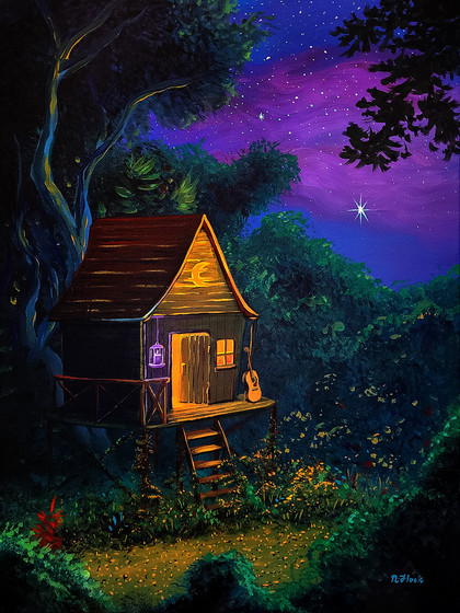 #acrylic #clouds #landscape #mystery #night #painting #sky #stars #unicycle #whimsical #art #rbpainter