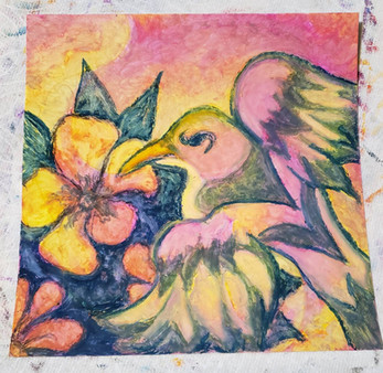 oil pastel on 6x6 paperMeditate on the ever changing state of the multiverse in the form of this abstract flower