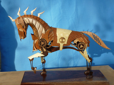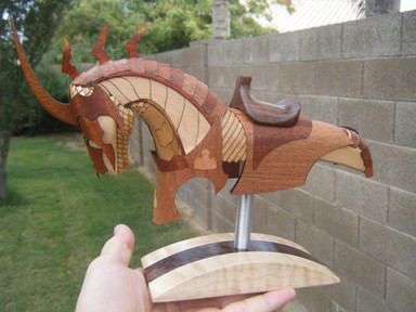 Excellent job! I love the use of different colored wood on the feet. The shape of the head is a little blunt, but other than that, fantastic.