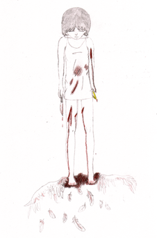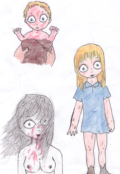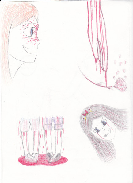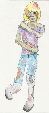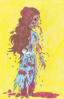 Just want to first say that I'm unsure if this falls under mature content or not. I'll tag it as such if it is considered that. This is basically my take on the personification of colitis. It was somewhat therapeutic to draw something like this. I was diagnosed with colitis in July of 2015. It's almost the 2 year anniversary. We know I have a type of IBD (Inflammatory Bowel Disease), but don't know if it's specifically Crohn's or Ulcerative Colitis. Both can affect the colon. My first gastroenterologist was strongly leaning towards Crohn's. There is no cure for either diseases. Although, technically for UC, if you take out the colon it's basically gone. That only occurs in the colon. I'm supposedly in remission (although unsure about it lately), but still suffering from the effects it had on me. It's an autoimmune disease, so basically my body thinks that part of me is a foreign object and is constantly attacking it. Or, it's basically eating my colon. (Possibly part of my stomach, too.) Fun. Many of the symptoms are internal, so many people may look fine, but internally they really aren't.I based the skin color off of my first colonoscopy images. The colon itself looked like an angry red color, and the ulcers were all over the place looking like bright red stars. It was beautiful, but not good. I tried to make the ulcers a brighter orange-like color, but didn't have the right colored pencil. The lines on the skin represent scarring. The damage caused a lot of scarring throughout my colon. Those hurt more than I expected. I personally didn't have much visible blood come out, but people tend to bleed internally because of those ulcers. So, there's lots of blood coming through the hospital gown, and dripping off of them. They're wearing a hospital bracelet and slippers. The squiggly side lines are supposed to show the grumbling/noisy sounds coming from the gut that many of us get. Mine's pretty constant, and is annoying.
