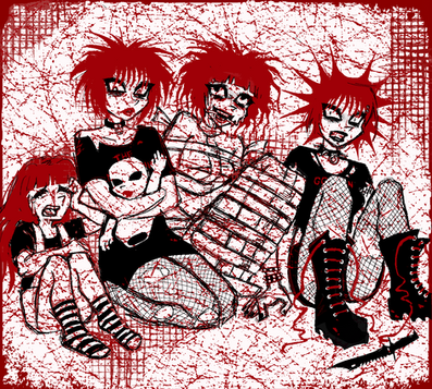 I decided to do some fanart for what is possibly the greatest American punk band ever; X (and not the one that comes from Japan though they're awsome too).From left: Billy Zoom, Exene Cervenka, John Doe and DJ Bonebreak (who I made WAY too tall XD)