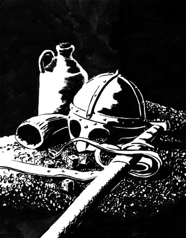This is my take on how I imagined the sword in the stone would've looked, see we went over the Camelot story in my english 4 honours class and of course monty python and the holy grail (best damn movie ever!!!!!) and after 2 sittings I got it perfect in pen!!! wooo!!! then I made this copy and stained it with coffee and paint and tea etc. lol ^^ this is one of my favorite pen sketches!Related content