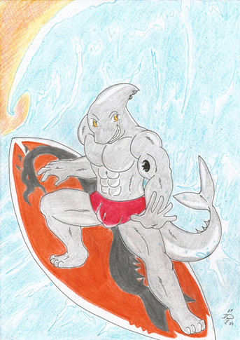 Jamaican-born scholar and athlete Theo Roberts is a champion swimmer and was quickly gaining attention. Spiritual, as well as intellectual, he wasn’t chasing fame but feels blessed to have such support. What drew others is his martial arts prowess, which stems from his mixed Asian heritage (his mother, a Japanese school teacher, imparted this to him through study of history). His qualifications easily brought him before the ‘Hero Initiative’, where he took the alternate form of an Icthyosaur. As “Dive Kick”, he handles amphibious operations and is trained for water rescue. His large eyes see much, in various light levels. When out of the water, he’s incredibly acrobatic and flexible.