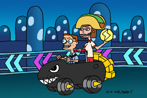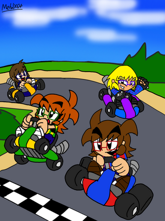 When I was in AVP class at the Pikes Peak Community College, during the holiday parties, We played Mario Kart on Wii U and my friend Serpy has called me a Mario Kart Enemy which it didn't hurt me, I liked it. So here's me racing against Serpy, Hayden, Kenny Anderson, Marissa, Dipper and Mabel Pines and Wander.Art (c) Danny Joyner