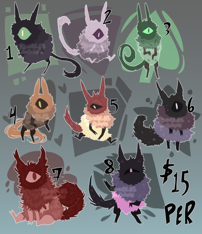 Inktober AdoptsWill be working on adopts for Inktober prompts throughout the month (and likely leak into November since I've had a slow start)! They'll all be mixed, so humanoid, feral, object head, or my common smokey skull adopts.