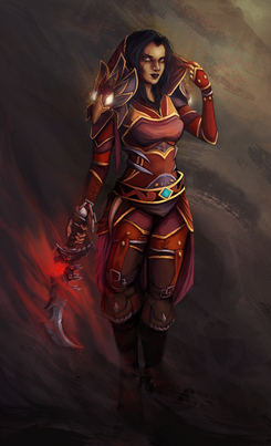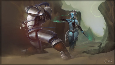 Valla and Sylvanas having a Hearthstone showdown. Someone seems to be cheating... ΒWhen I first saw this contest I had all these great ideas with epic battles with movement and depth! Until I remembered I really don't do that very well. I figured I'd rather play on my strengths and try to be a little original although it might not hit the mark.