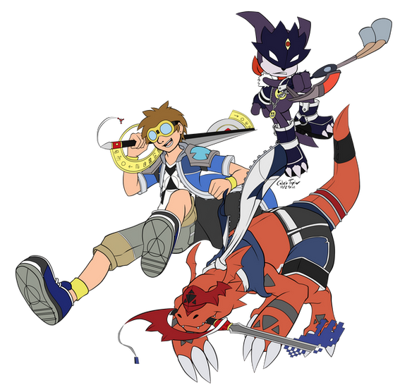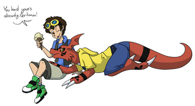 And little Guilmon, looking ridiculously cute in his too-small hoodie over his belly