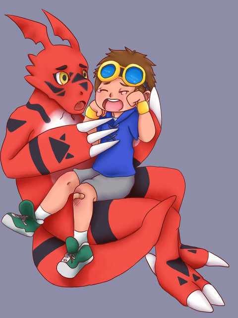 Ruki's deadpan gaze could have frozen water, but Guilmon just looked proud.
