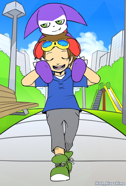 "...Gotta hand it to you, goggle-head, you managed to raise an innocent baby into a world-class b-" Renamon swiftly interrupted her partner by sweeping in front of her. "-Let's get to the party!"