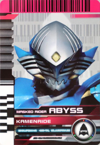Abyss is unusual amongst the Kamen Riders in that he has two Contract Monsters: the Abysslasher (アビスラッシャー Abisurasshā), a humanoid shark that can fire high pressure streams of water, and the Abysshammer (アビスハンマー Abisuhanmā), a humanoid hammerhead hark. As Kamen Rider Abyss, Kamata uses his Final Vent to combine his Contract Monsters into a creature known as Abyssodon (アビソドン Abisodon), a single giant mechanical shark with a chainsaw attachment (giving it the appearance of a sawshark when in use) and machine gun eyes (giving it the appearance of a hammerhead shark when in use). Unlike other Riders in the Mirror World, the loss of the Contract Monsters did not result to Abyss going into Blank Form.Related content