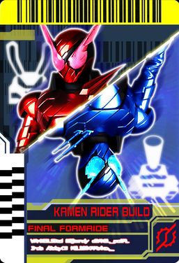 Sento sets two different Fullbottles into the Build Driver and turns the crank to transform into Kamen Rider Build. Kamen Rider Build, like Kamen Riders Double and OOO before him, can assume a variety of different forms, called Trial Forms (トライアルフォーム Toraiaru Fōmu), using different combinations of Fullbottles. However, each one has a Best Match (ベストマッチ Besuto Matchi) with another Fullbottle that creates an especially powerful form. Best Matches usually have unique names in comparison to other mismatched forms, and the caps of Fullbottles indicate what Fullbottle is its Best Match. The additional use of the Hazard Trigger upgrades a Best Match into a Super Best Match (スーパベストマッチ Supā Besuto Matchi). -source: Kamen Rider WikiaUpdates: