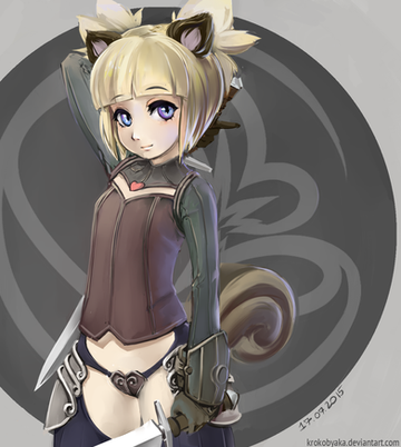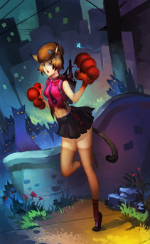 I have to agree with what the Daily Deviation message says, sheΒ reminds me of the characters in good old fighting videogames with her charismatic stance, her cute yet wild costume design and her defiant gaze.
